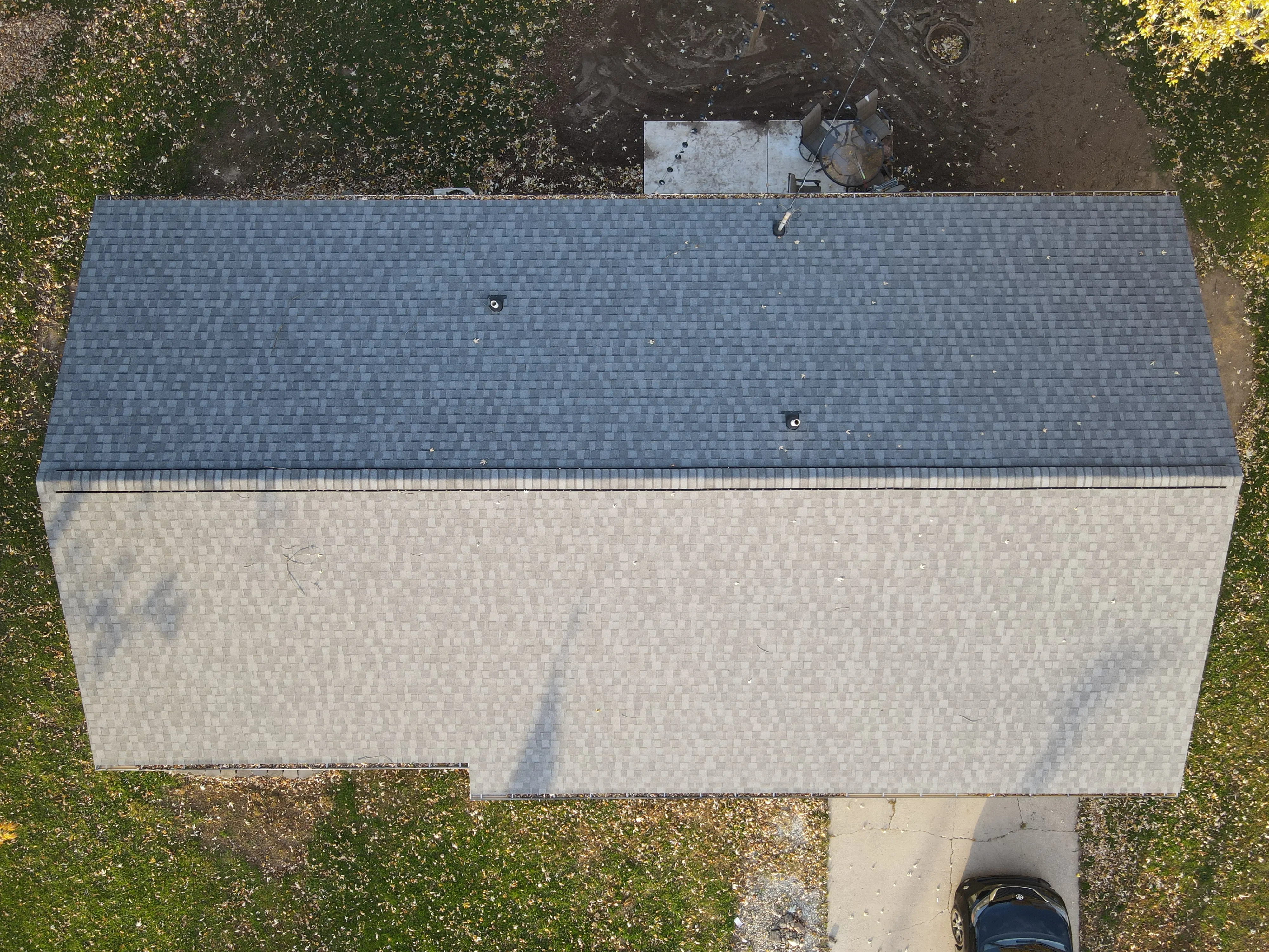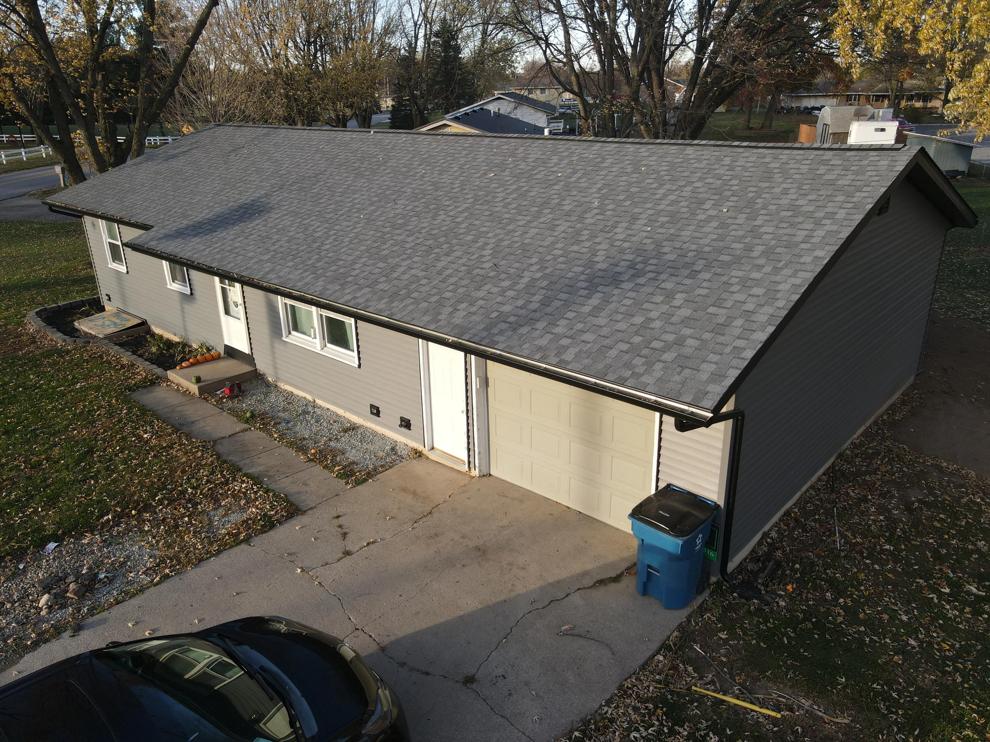 Asphalt Shingle Reroof 22 SQ CertainTeed Landmark in Pewter Full Siding Replacement Exterior Portfolio Market Square Vinyl D4 Siding in Stone Harbor, Accessory pieces in Black Full Gutter & Downspout System Replacement 5” Aluminum in Black
