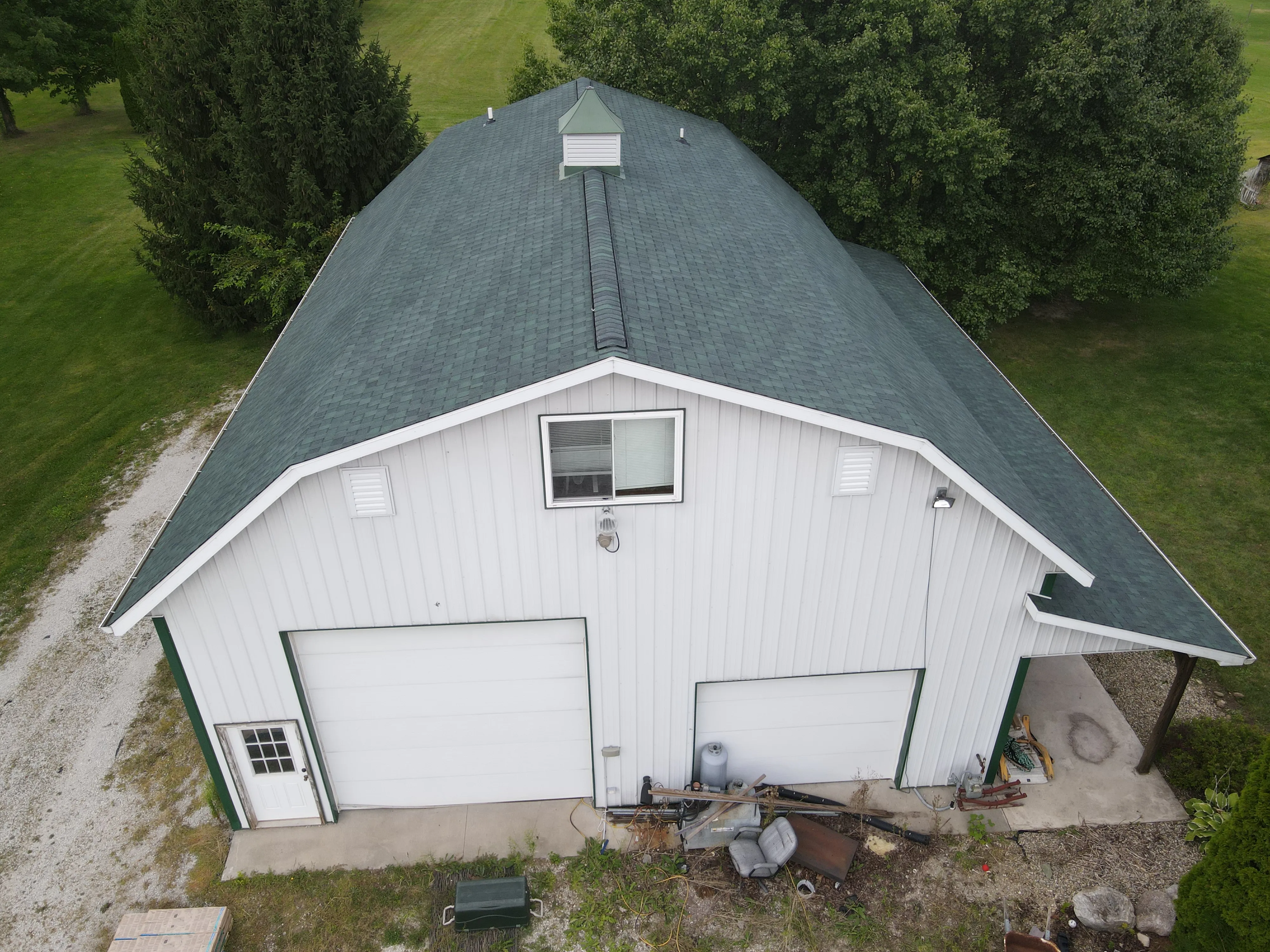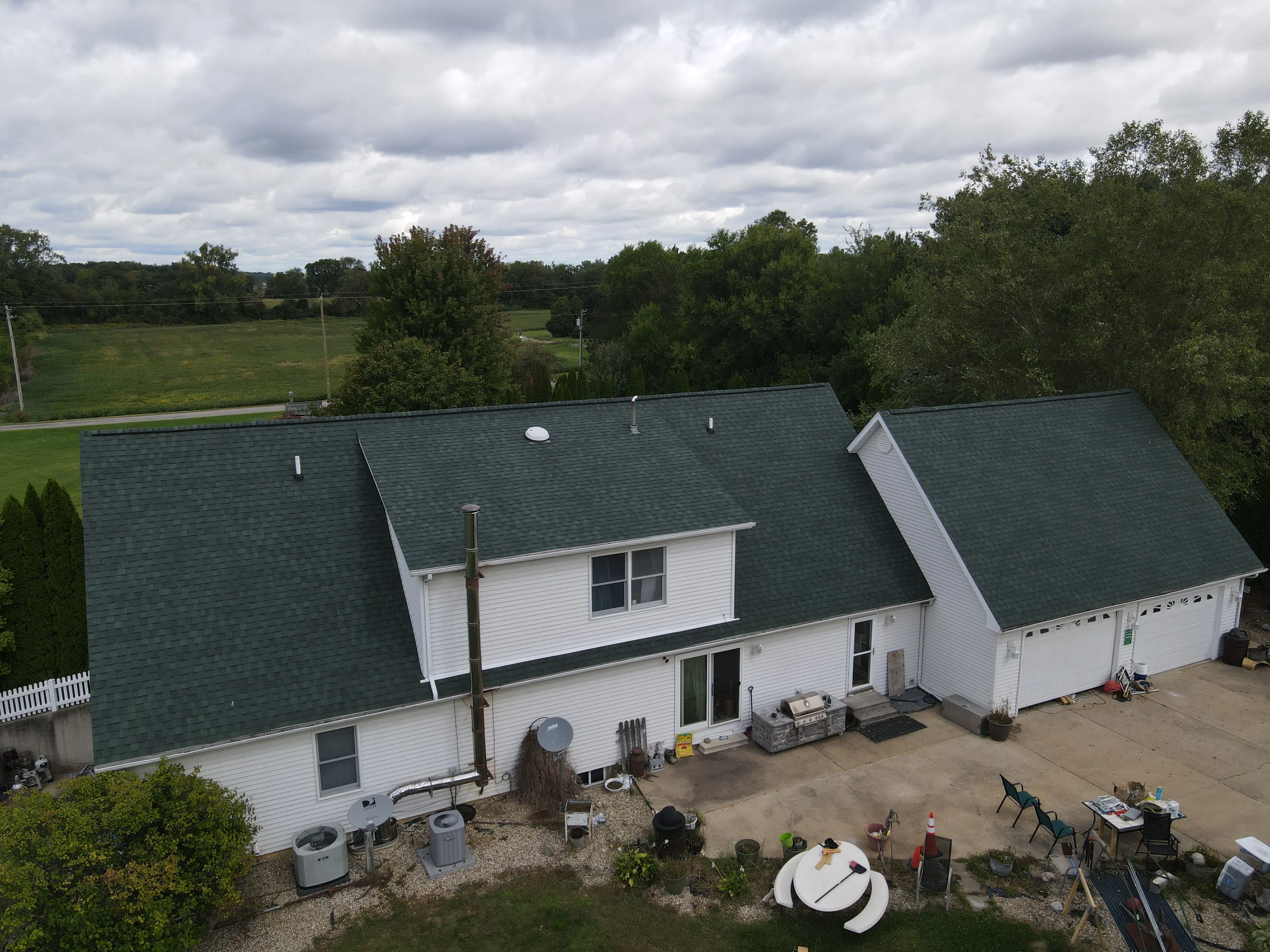 Asphalt Shingle Reroof 96 SQ - House, Detached Garage & Shed CertainTeed Landmark in Hunter Green Full Gutter & Downspout System Replacement - House & Detached Garage 5” Aluminum in White
